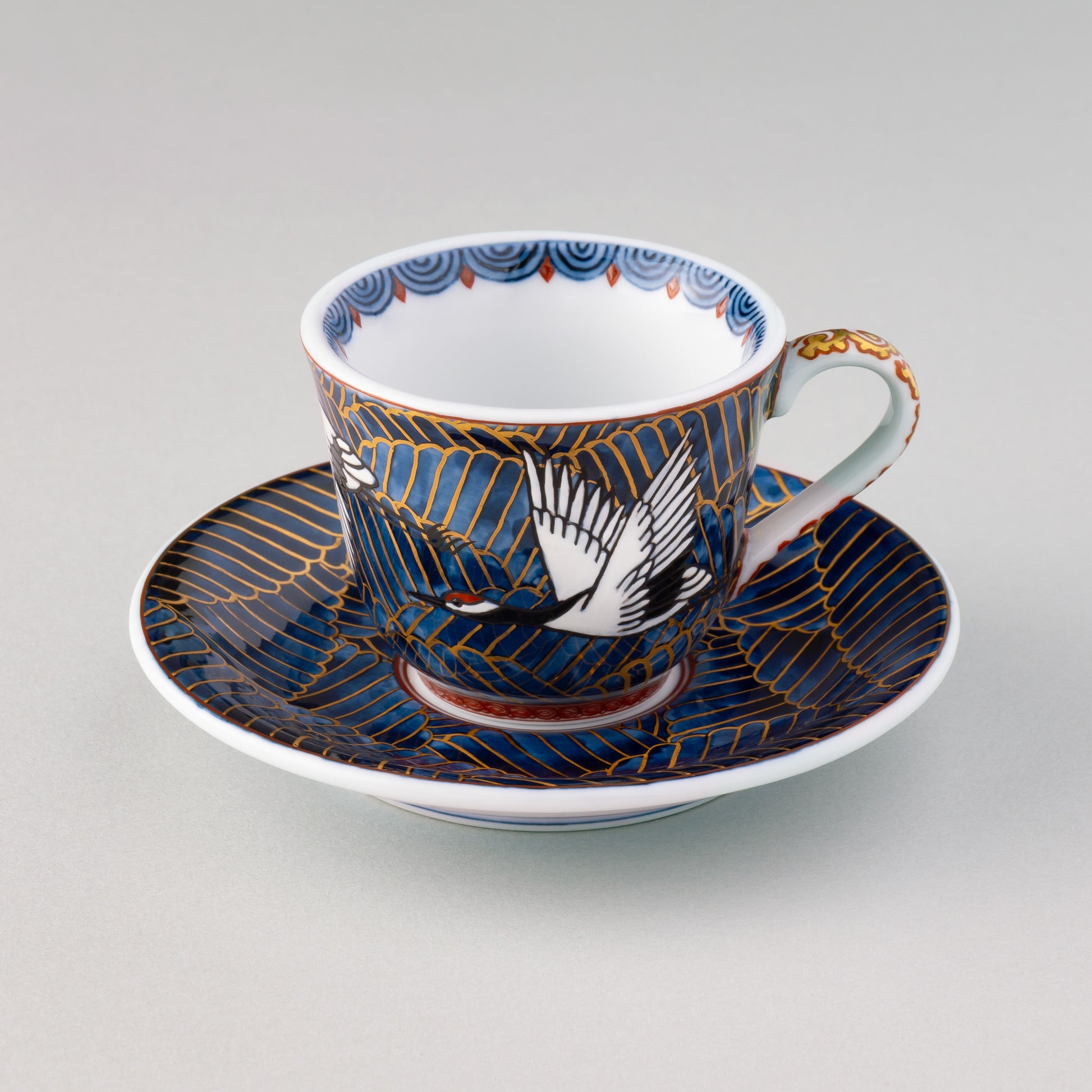 The design features cranes that migrate crossing a deep blue ocean. The swell of the waves is expressed through the golden lines. The white of the birds’ wings is an extremely difficult colour, achieved through multiple layers of coating applied with great caution. Another challenge is rendering the beautiful glossy finish for the black of the bodies and wings.
