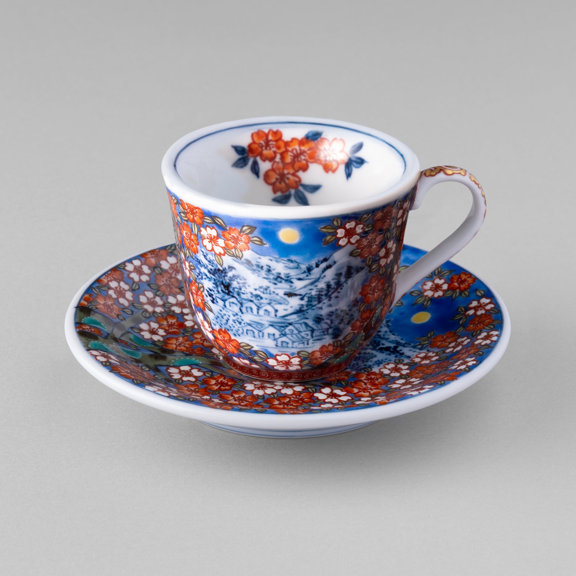 The design shows a moonlit hill emergingbetween cherry blossoms in full bloom. The flowers are in vermillion and white. The vermillion has been shaded in each petalwith the aim of conveying a gentle feeling,whereas the aim of the white colour is that ofcommunicating a sense of joy. The overall atmosphere is that of a peacefulspring night.