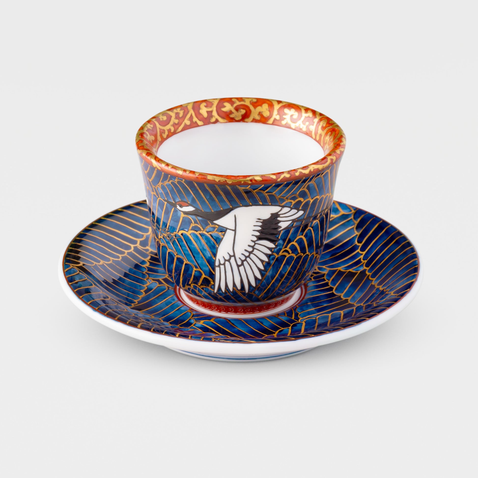 The design features cranes that migrate crossing a deep blue ocean. The swell of the waves is expressed through the golden lines. The white of the birds’ wings is an extremely difficult colour, achieved through multiple layers of coating applied with great caution. Another challenge is rendering the beautiful glossy finish for the black of the bodies and wings.