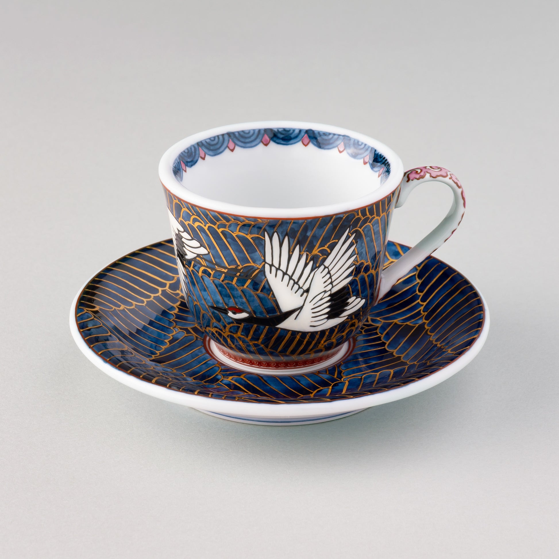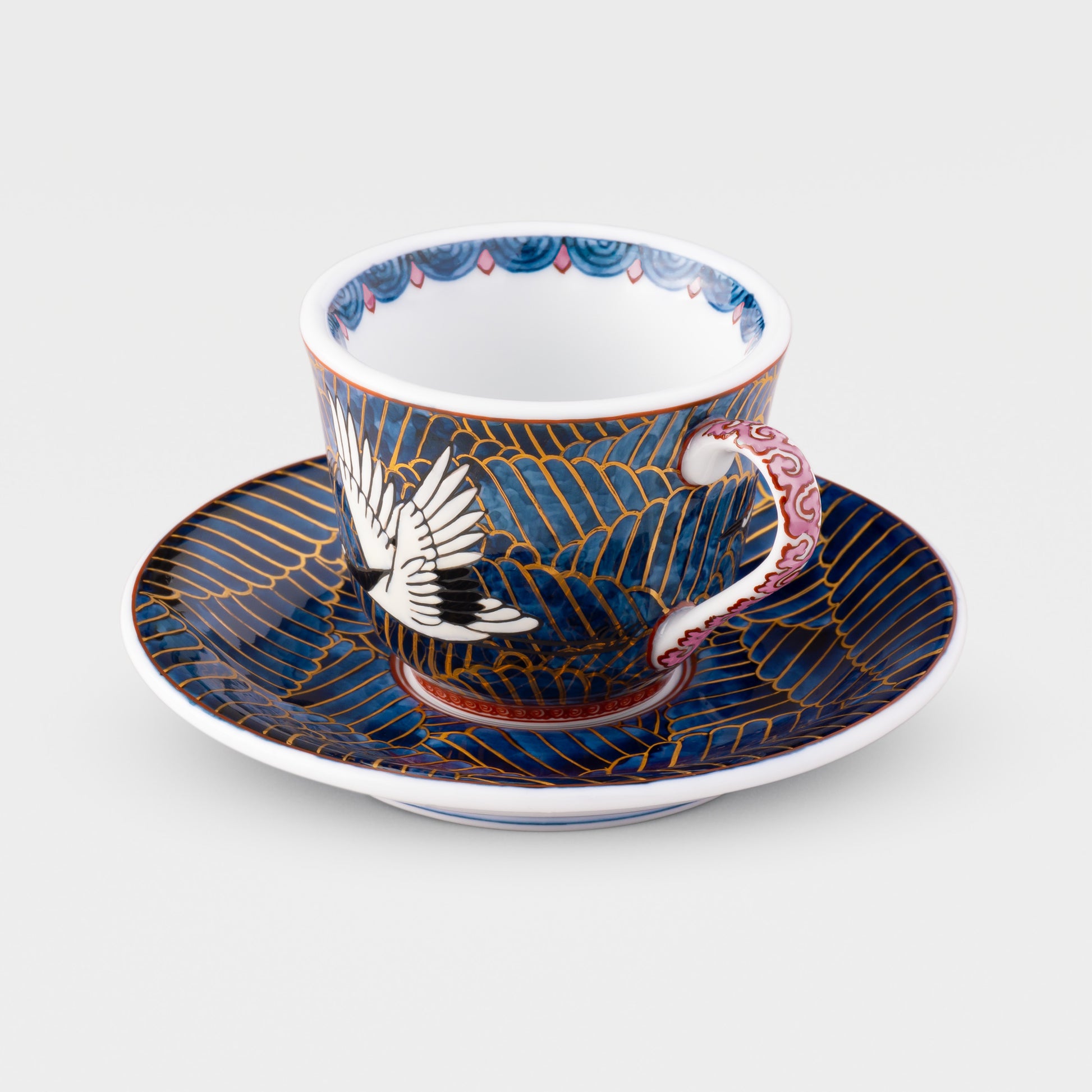 The design features cranes that migrate crossing a deep blue ocean. The swell of the waves is expressed through the golden lines. The white of the birds’ wings is an extremely difficult colour, achieved through multiple layers of coating applied with great caution. Another challenge is rendering the beautiful glossy finish for the black of the bodies and wings.